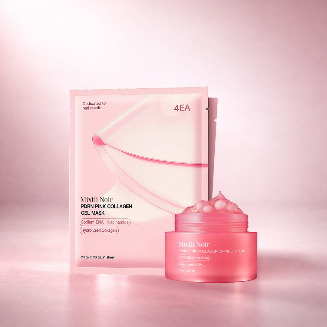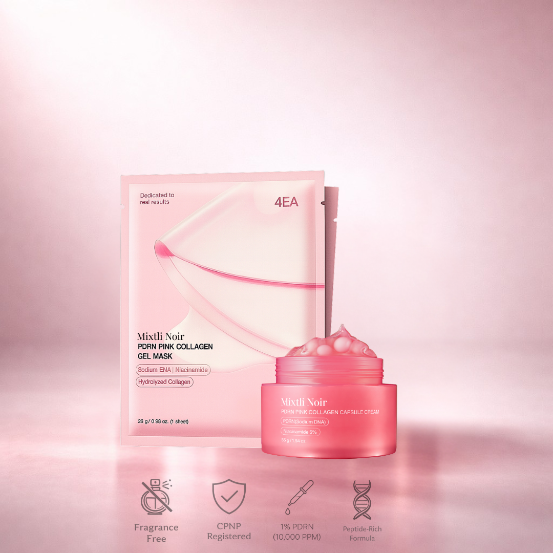 The Renewal Ritual pairs an essence-rich PDRN sheet mask with a capsule cream designed for daily reinforcement — working together to support smoother-looking texture and balanced luminosity over time.
